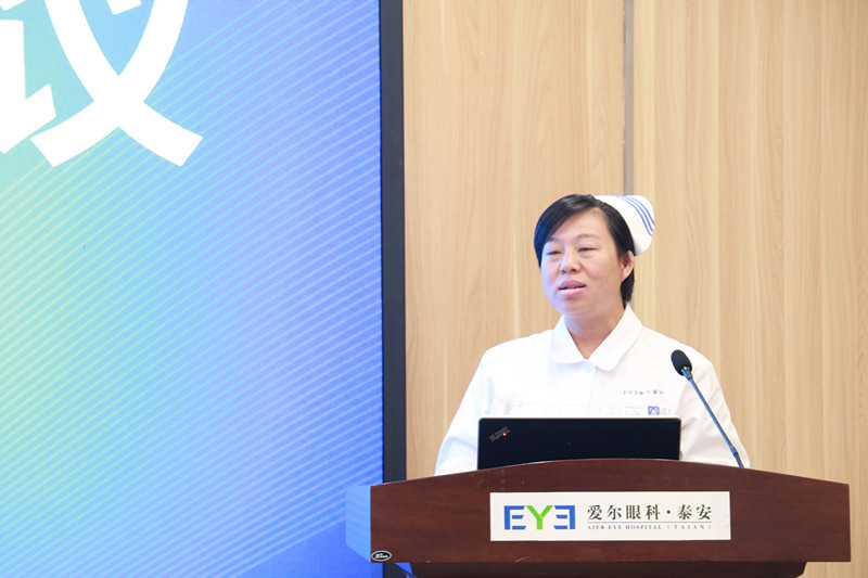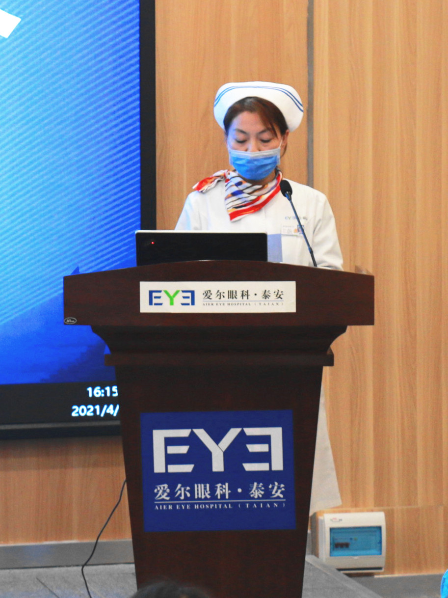 ? ? ? ? ?在會議中剛剛接受任命的護理部副主任、門診護士長周雪代表與會護士發(fā)言,她表示在以后的工作中,將會貫徹《決定》精神,扎實做好醫(yī)療護理工作,在實踐中學(xué)習(xí),在學(xué)習(xí)中進步,充實理論知識,提升個人整體業(yè)務(wù)能力,讓來到泰安光明愛爾眼科醫(yī)院的患者享受到更專業(yè)、更親切的就診體驗。